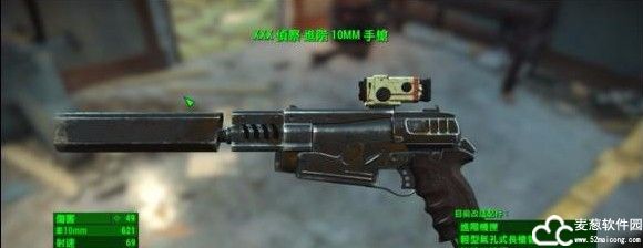 装了侦查镜,可以记录敌人位置,让潜行更容易。不推荐其他口径的枪的原因是子弹稀缺,因为主要靠潜行暗杀,10mm弹药相对较多,威力也不错。可以连射,一发不死快速补几发。