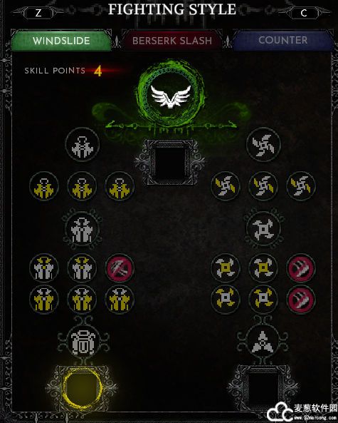 图中的三个空格也是用来放碎片的 左右下角的因为demo技能点不够点到那所以不知道什么效果,放在中间会改变风格的主动技能