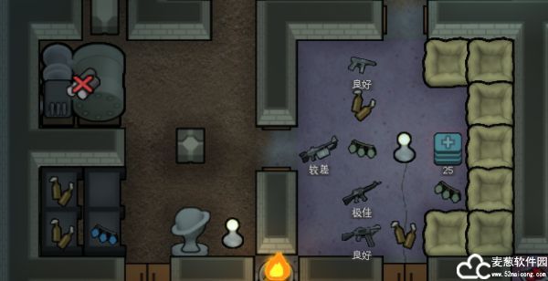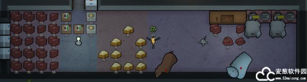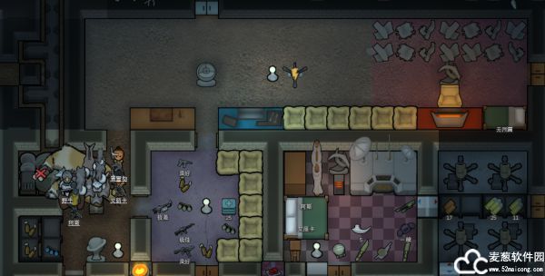 在环世界最新中文版,右侧小房间是武器库,同时也用于战后对抗伤动物的快速治疗。想用好这个阵地,对于动物站位的细致划分必不可少,我将会用图片来展示。