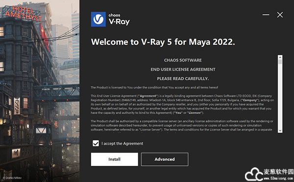 2、双击“vray_adv_51021_maya2022_x64.exe”进入软件安装界面,点击“Install”