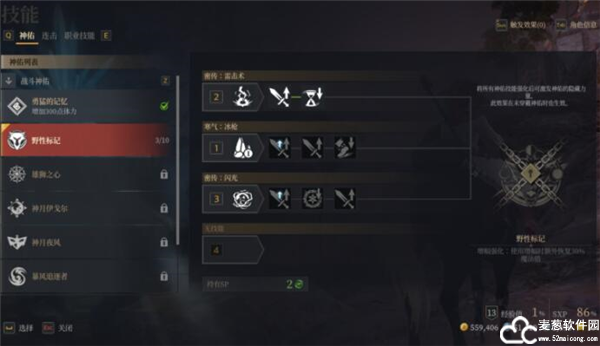 关于神佑的信息可以在菜单(Esc)>技能>神佑中找到。
