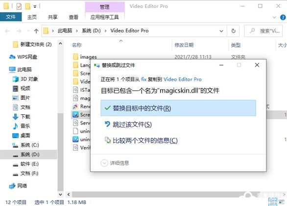 5、回到刚才下载的数据包中将“fix”文件夹中的破解文件,复制到软件的安装目录中替换原文件即可