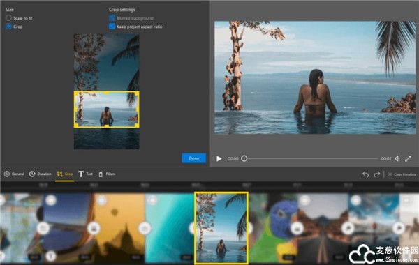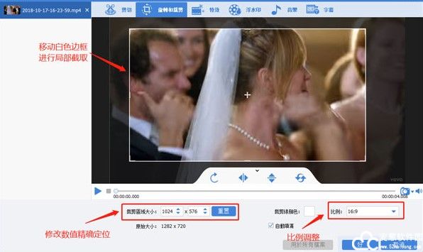 2、旋转裁剪功能,可对视频进行旋转或局部截取