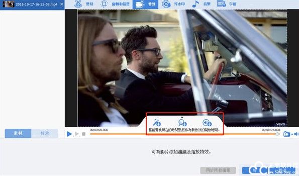 4、多种滤镜与荧幕特效任君选择(色彩修正、局部放大、播放速度等)。