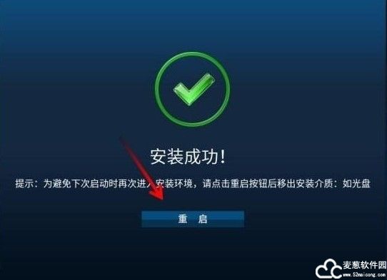 10、安装成功后,点击“重启”,拨出U盘