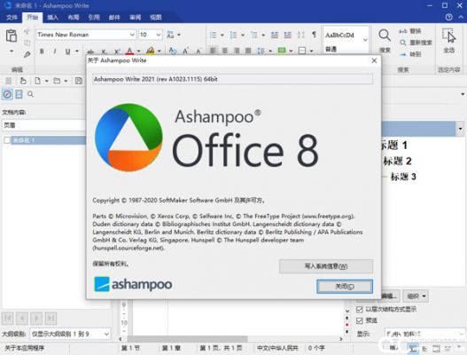 7、打开软件我们能够在关于查看到软件已是Ashampoo Office 8中文版