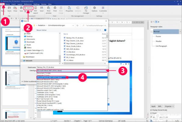 现在您按提示输入文件名。然后点击 “保存”。您的文件将保存为 Microsoft Word 的 DOCX 格式