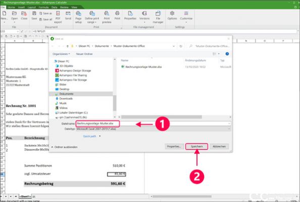 现在您按提示输入文件名。然后点击 “保存”。您的文件将保存为 Microsoft Excels 的 XLSX 格式