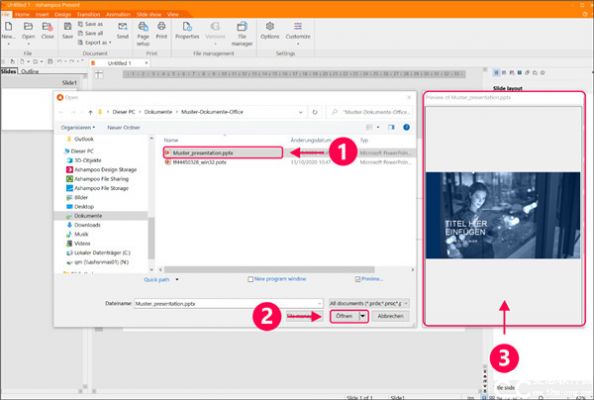 默认文件类型过滤器显示所有的可识别为文本文件的文档。只需点击选择您的 Powerpoint 文档。点击 “打开” 就可以加载而不需要转换。请注意有实时预览功能让您可以了解文档大概内容