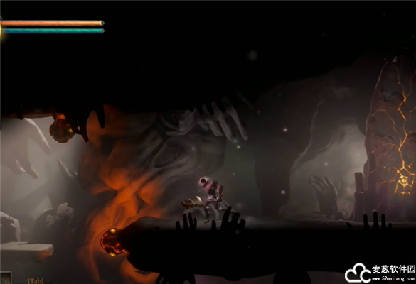 3、大部分魂类游戏回血都是用道具,grime游戏就只能用吸取这个技能来回血。通俗讲就是吸干别人补充自己,当吸取敌人的精华让左上角黄色技能条满格的时候就可以回血了。