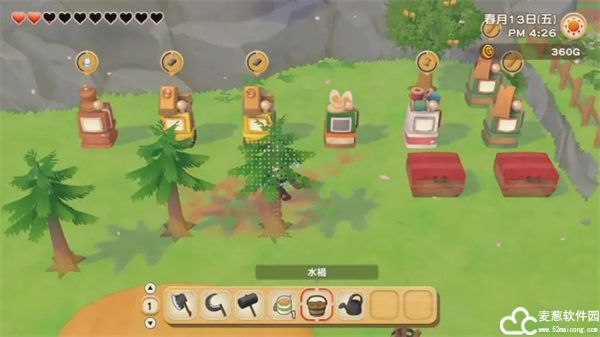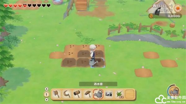 使用经营牧场获得的金钱升级斧头、锄头、洒水壶等工具,会有提高一次耕地的面积等等效果,可以更加方便地开拓牧场、享受牧场生活