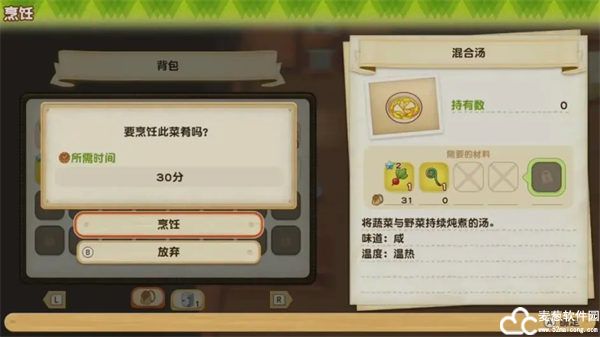 6、游戏中还可以烹饪,烹饪的料理需要消耗时间,一次只能做一个,吃完料理后左上角会多一个吃饱了的标识