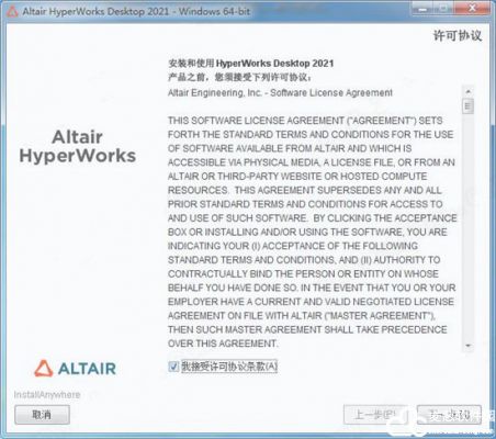 2、分别安装2021.0 Win64、Mechanical Solvers Win64、CFD Solvers Win64!双击hwDesktop2021_win64.exe运行安装, 勾选我接受许可协议条款