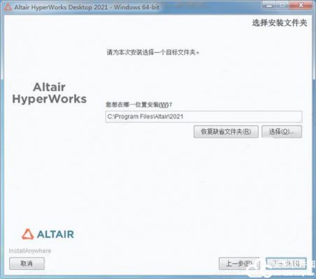 3、选择软件安装路径,默认路径为“C:Program FilesAltair2021”