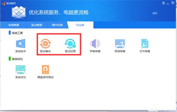 5、在百宝箱板块你还能够将驱动备份和还原