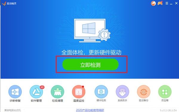 2、运行软件,进入软件的主界面,点击软件界面中间的立即检测选项,如图红框显示