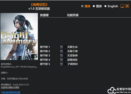 点击简体、繁体、English,可以切换语言 (切换语言后修改器将把该语言设置为默认语言)