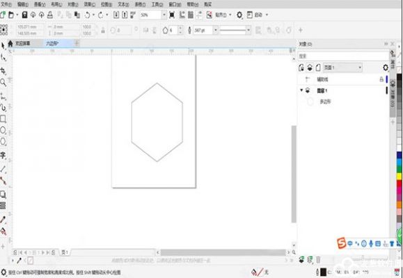 2、打开CDR矢量绘图软件后,直接用快捷键Ctrl+N新建文档。单击左侧的工具栏中的多边形工具,初始设定是五边形,单击上边工具栏增加边数即可画出六边形了,按住拖动出适合的大小即可