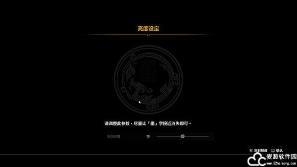 3、首次进入游戏玩家需要对亮度进行调整,通过左右调节直至让“墨”字消失