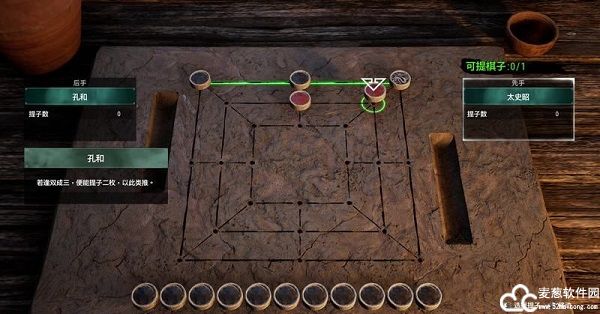 每形成一个三点一线就能提对方一颗子