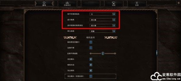 2、高亮设置可以着重在平时和战斗中突出角色或者提示圈,可以根据自身喜好设置,方便游戏过程种控制角色。