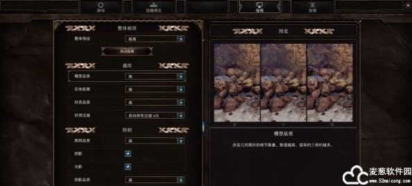 5、将鼠标悬停在各项画面设置上,右侧会出现不同等级的设置下游戏画面的区别。