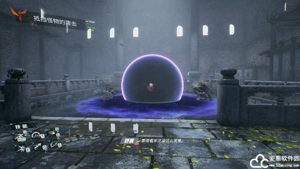 路上还能传个火,要特别小心铁门门前的战斗,场地狭小同时有5个骷髅兵和1个神兽,很容易战死,建议严格卡住电磁脉冲和光剑击飞的CD时间。随后通过崩塌的隧道就会来到广场