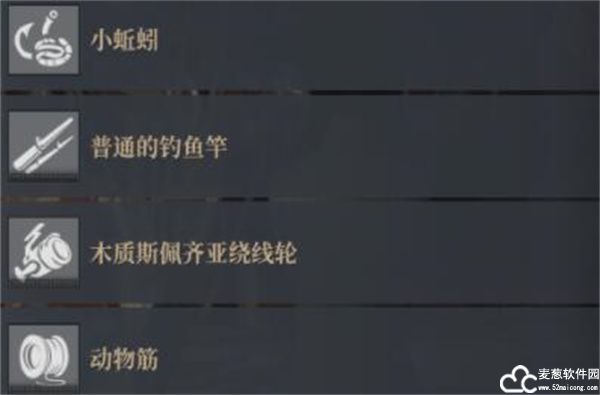 钓鱼需要钓鱼工具和鱼饵,钓鱼工具有3种,鱼竿 / 绕线轮 / 鱼线