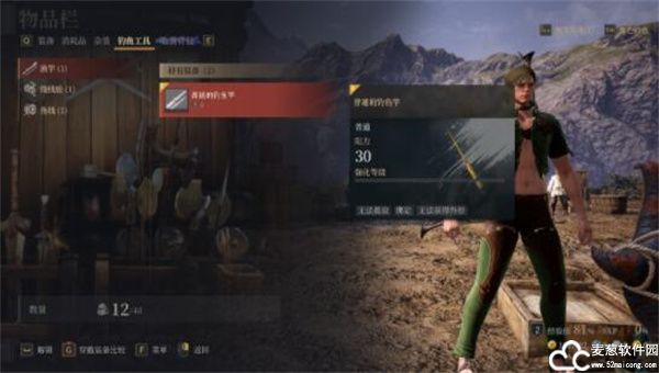 2、在每个类别下选择钓鱼工具并穿戴它们