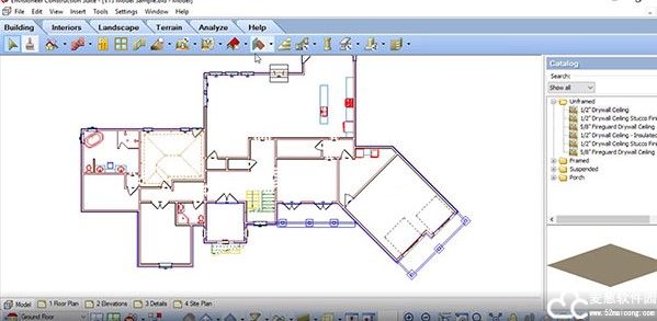 7、还为设计师们提供了地板、墙纸、桌子、灯具、屋顶、家具、建材等各种丰富的素材供大家随意使用,同时拥有强大的3D框架结构功能。