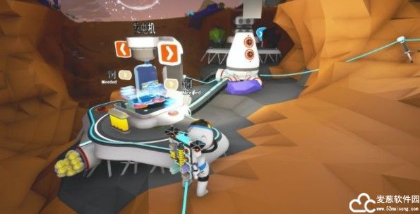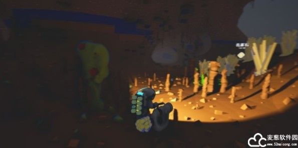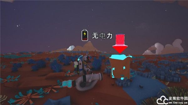 在探索过程中,需要随时注意氧气的存量,而如果你想要离开到远处(比如洞穴里)时,也可以采取在背包上存储额外氧气的方式。在地图中你能找到散落的资源(蓝色代表氧气),抽取成一个单位后,它就形成了[氧气]这种资源,电力也是同理。