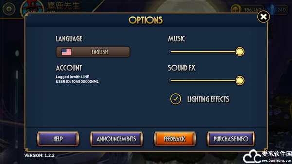 MUSIC和SOUND FX分别对应音乐音量和音效音量。