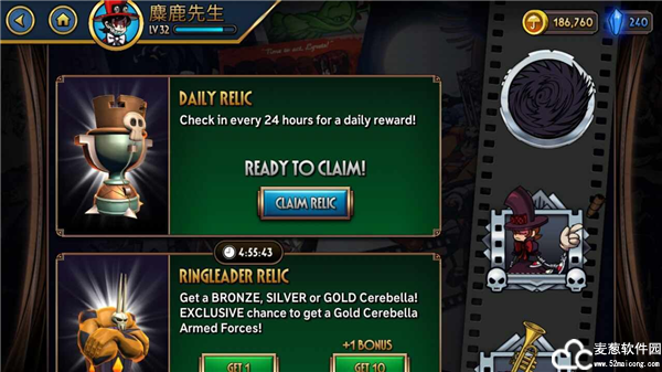 在骷髅女孩中文版,抽抽抽界面为用钻石购买RELIC,抽取角色和技能。RELIC所能抽取的角色和技能往往会显示在右侧的边沿栏处。每4小时和每24小时均会获得一次免费的抽取机会。故事模式的进度也常常会使玩家获得一定的RELIC。购买RELIC需使用钻石。通常抽取角色和抽取技能的卡池是分开的。一次购买10抽会赠送额外一抽。每天会有一个随机角色的专属卡池,卡池中为不同稀有度的该角色,该卡池相对价格更高,但开到对应角色的金卡的概率也更高。