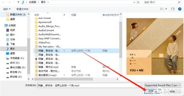 2、点击打开之后下一步我们在打开的选择文件界面中,选中目标音频文件之后点击右下角的打开按钮即可