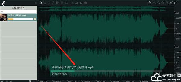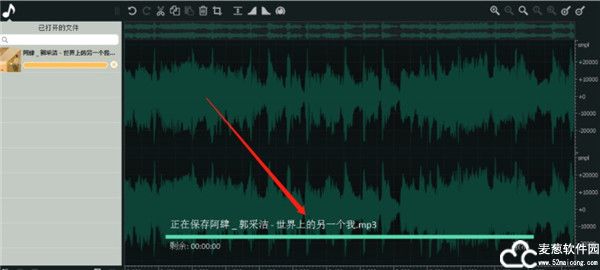 6、点击保存图标之后软件就会开始保存我们裁剪之后的音频片段,最后等到保存操作完成我们的裁剪操作也就完成了。
