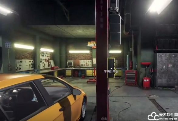 10、在汽车修理工模拟2021正式版,打开车辆升降台,把汽车升起来