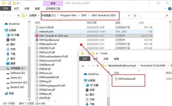 6、然后将ONToolbox.dll移动到软件根目录下,复制和替换原文件