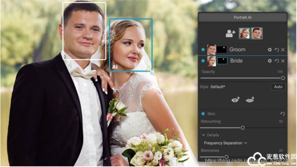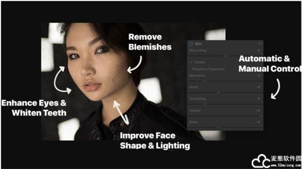 ON1 Portrait AI 2021中文破解版,皮肤修饰使用频率分离来保持自然的皮肤纹理,同时减少整个皮肤的颜色和色调变化。它产生无瑕但看起来自然的皮肤