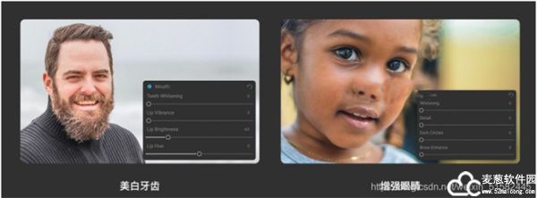 ON1 Portrait AI 2021中文破解版,也会自动检测到牙齿和嘴唇。您可以轻松调亮笑容并调整嘴唇的颜色和饱和度
