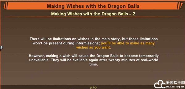一、完成【弗利萨篇】后(在此之前菜单里的【龙珠】选项是灰色的),系统会提示你龙珠系统已解锁,七颗龙珠散落在世界各地,集齐它们可召唤神龙。注意:“【龙珠】是指只要收集7颗,就可以实现愿望的神奇圆球,它正散落在世界各地。收集7颗后,只要进入【主选单】>【龙珠】,就可以许愿得到稀有道具、大量Z珠,甚至是让已经打倒的劲敌复活。之后,就等你去确认复活后的劲敌变成怎样了。但是,可以许愿的时机会随着主线剧情的发展而产生变化,请仔细思考后再做选择哦。虽然进行主线剧情的时候,可许的愿望会受到限制,但是章节间的中场休息时间并不会限制次数,可以许无数次愿望。许愿过后,龙珠就会暂时拾取效力。需在现实世界的20分钟后才会恢复实现愿望的效果