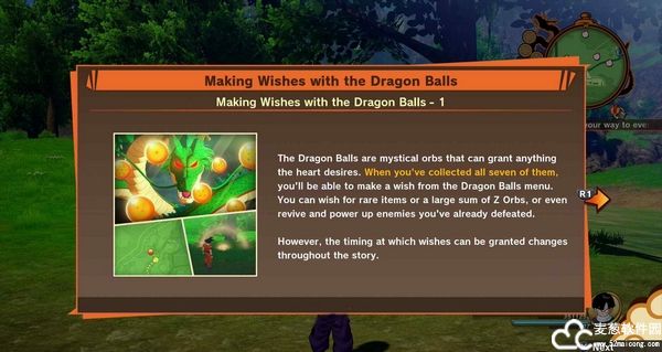 二、龙珠Z卡卡罗特电脑版龙珠的位置是随机的,每个人遇到的情况各不相同。不过不用担心,地图上有标记,很容易就能找到。打开【地区地图】,按放大以便于查看图标位置,按游民星空在具体地点放置路标,然后前往金色路标即可