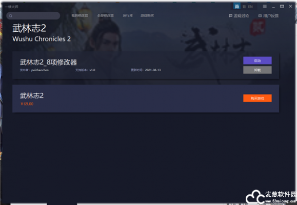 F1+1打开武林志2八项修改器,开启状态/击杀修改