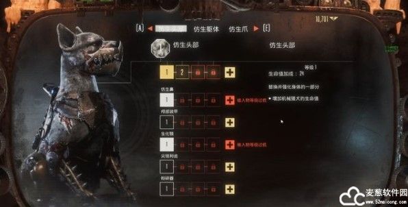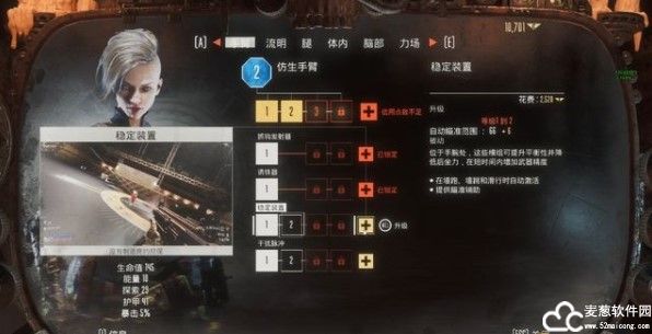 10、升级人物时,可通过增强不同的义肢部位,达到对应的效果。