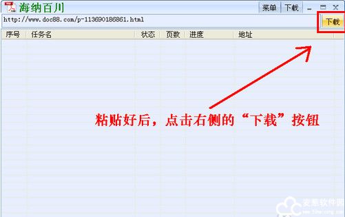 4、现在返回到道客巴巴文档下载器的主界面,将复制到的链接地址粘贴到下载器的链接地址框,粘贴好后点击下载,如下图:
