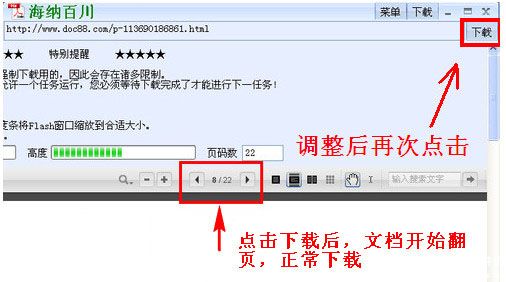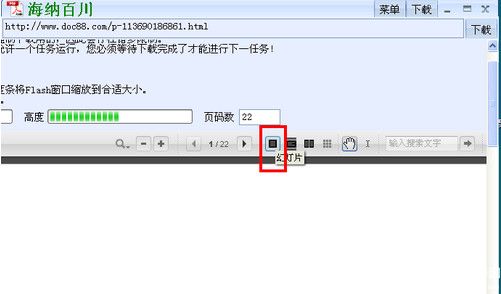 7、在海纳百川下载器2021最新版,点击按钮进行下载。窗口调整结束后,再次点击下载按钮,文件便开始正式下载。你会发现,图中的页面会连续向下翻滚,这是正常下载的迹象。下载结束后,会转换成已完成页面。