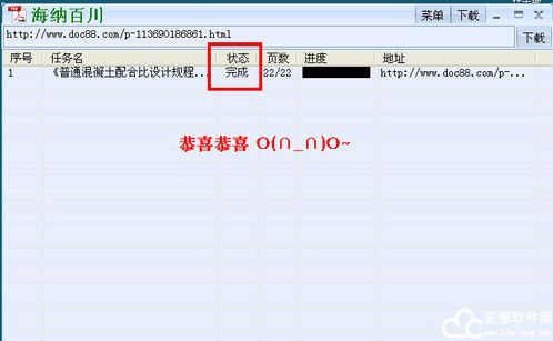 2、将文档复制在海纳百川下载器2021最新版中,等待一会后,就下载成功了。