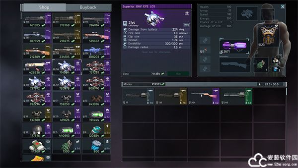 接任务,去商店,清光身上所有东西,先买智能芯片(主加力量和装甲),身上其他芯片卖掉、技能点+金钱上、买最贵的机枪(子弹4500,3组),能量枪1个+能量1组,其他武器弹药全卖,不要忘了买手电筒
