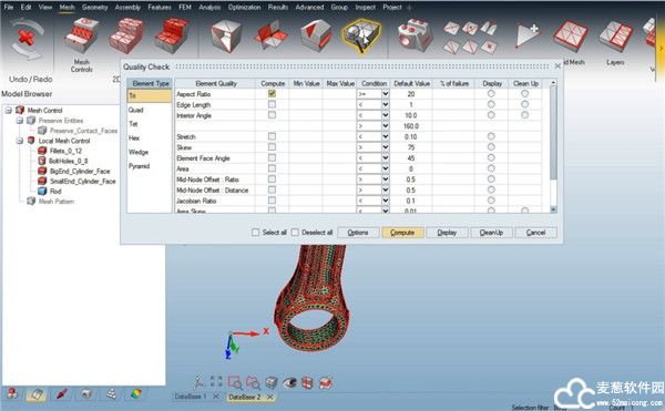 将模板标准应用于圆柱体、圆角或孔等各种特性的网格创建过程。