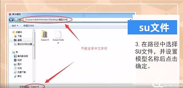 3、在安装路径中选择su文件,给模型取一个名字,点击确定;