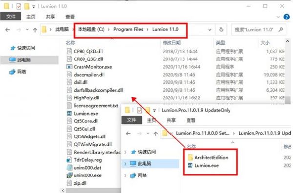 8、复制Lumion.Pro.11.0.1.9 UpdateOnly中的所有文件到安装目录中,替换原来的文件;